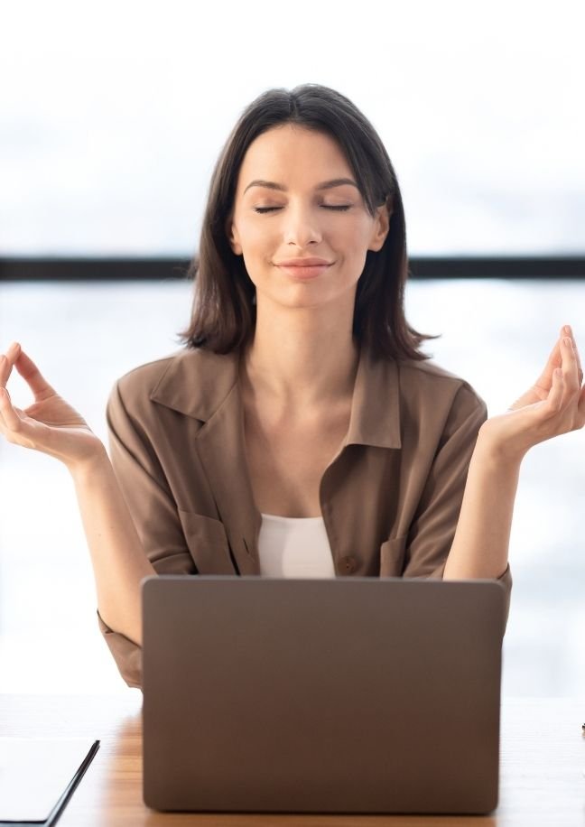 Take a deep breath through your nostrils and exhale through your mouth gently. Notice the rise and fall of your chest. With each inhale, let your body receive the calm from nature. With each exhale, let the stress dissolve like air dissolves in the atmosphere.